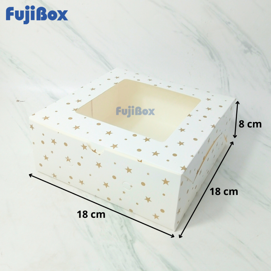 10 Pcs Fuji Box Dus Kotak Kue Ivory Motif Polkadot Bintang Emas 18 cm x 18 cm x 8 cm Putih Ivory Premium Jendela
