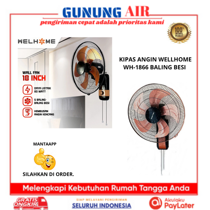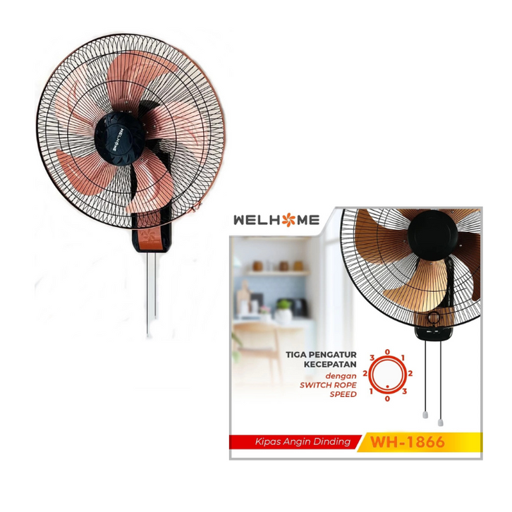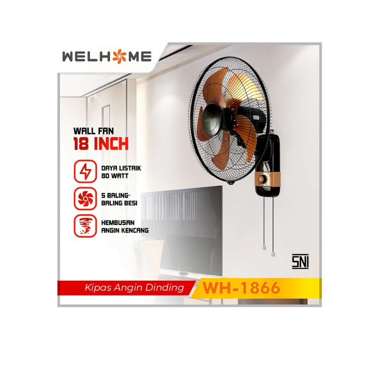 WELHOME KIPAS ANGIN DINDING WH-1866 - Wall Fan 18 Inch Baling Besi / Terbaru / Jamin Awet