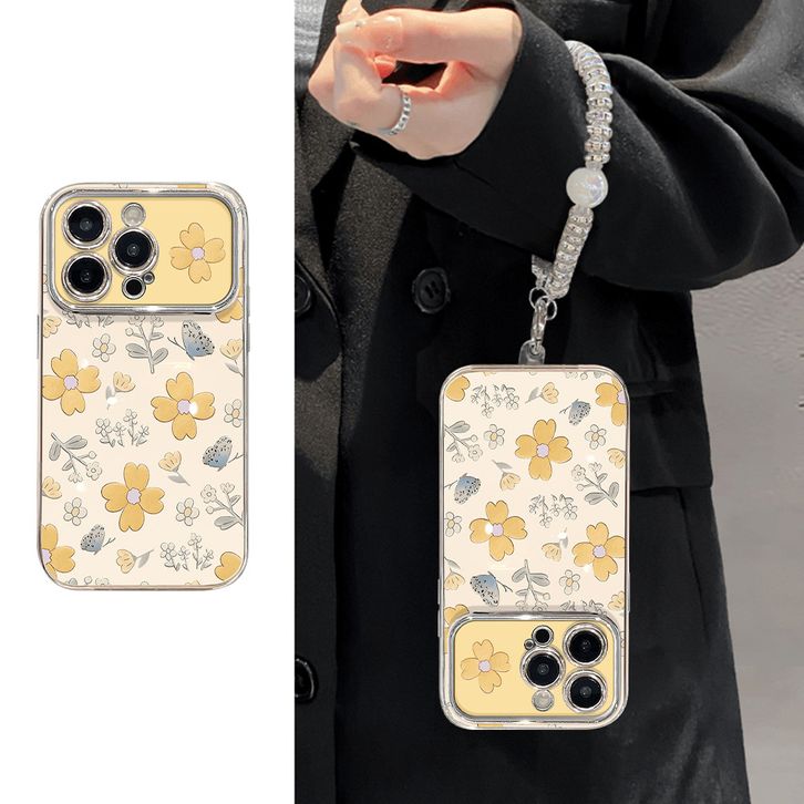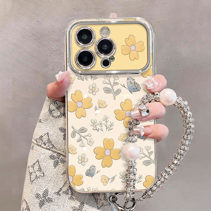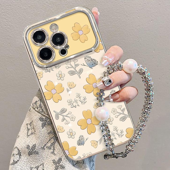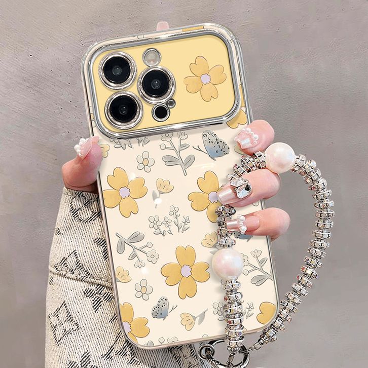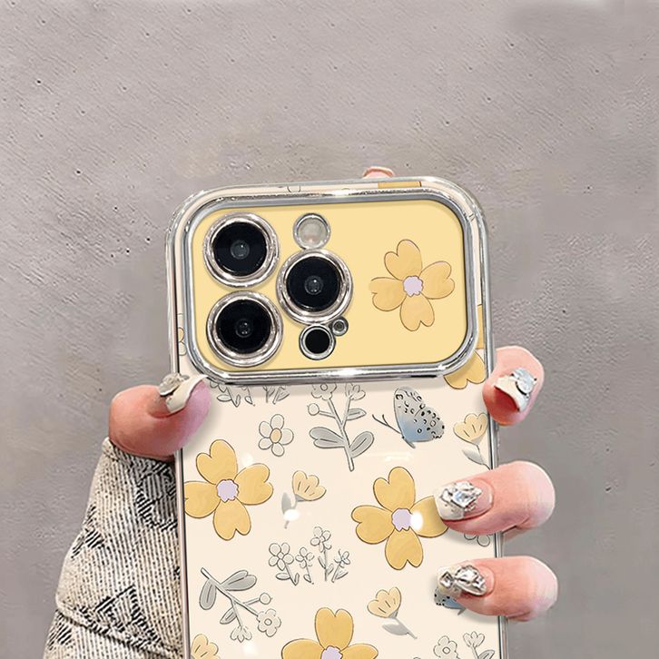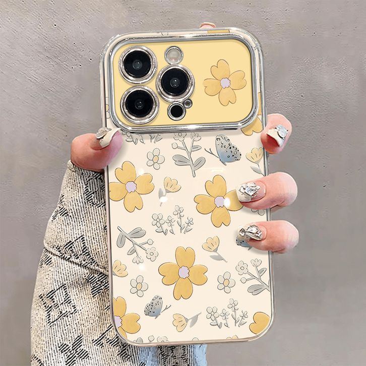 Casing HP Untuk iPhone 16 11 12 13 14 15 pro xs XR 15 14 plus pro max 7 8 6 7+ 8+ 6+ Xs Max Casing dengan Bunga Kuning