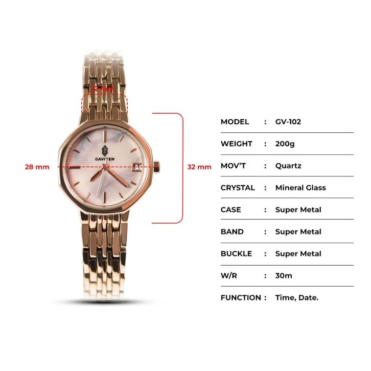 Jam Tangan Wanita Gaviten GV102 Original Garansi Resmi 1 Tahun Stainless Steel Tanggal Aktif Anti Air Free Paper Bag