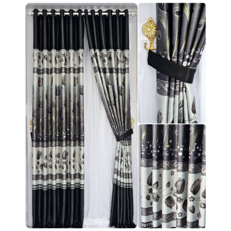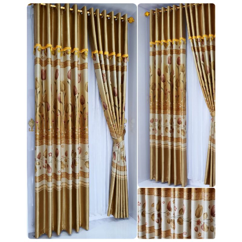 (FLASH SALE) Gorden Jendela Poni Blackout Bunga Tulip Prin Tebal Mewah Aesthetic Pintu Kamar Panjang 225 X 135