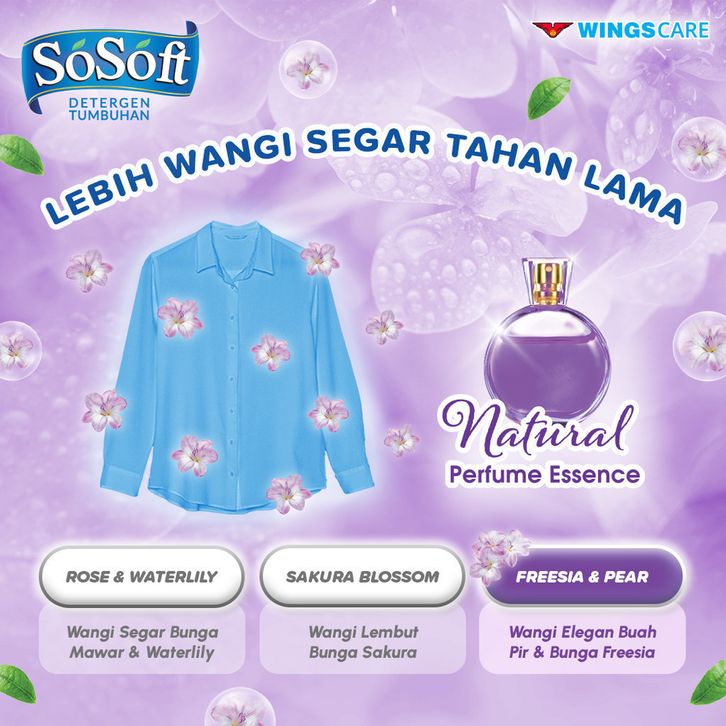 Deterjen Cair SoSoft Deterjen Cair Freesia Pear Botol 700ml x 3 pcs eterjen Laundry Deterjen Cair SoSoft