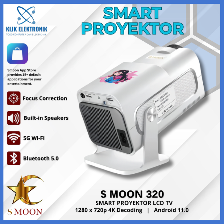 PROYEKTOR MINI ANDROID SMOON320 SMART PROYEKTOR LCDTV - INCLUDE HDMI - GOOGLE STORE - ANDROID - NETFLIX - YOUTUBE - WIFI