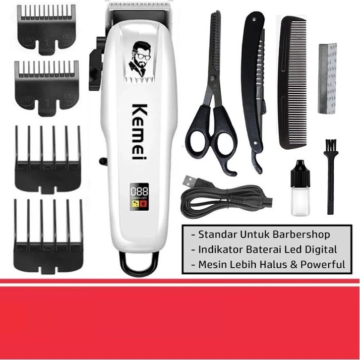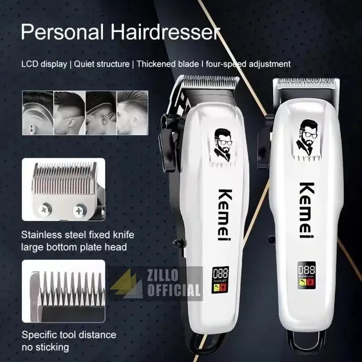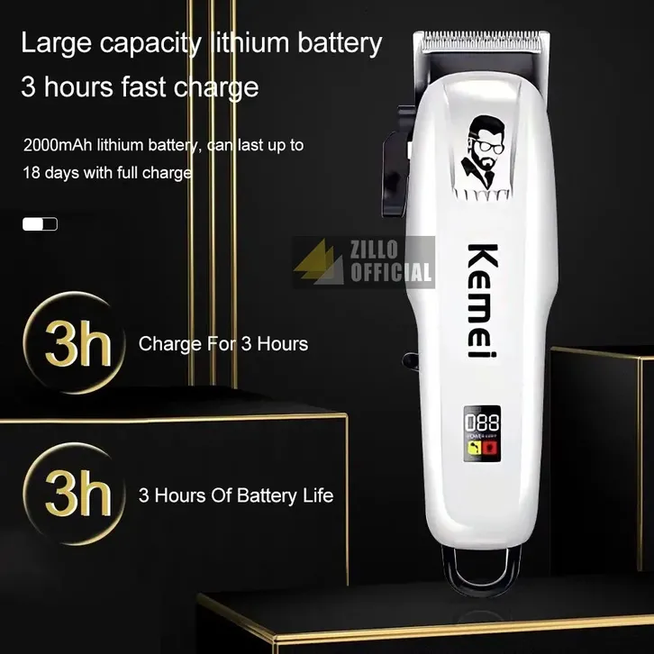 ZILLO Alat Pencukur Rambut Cas Profesional Barbershop Mesin Cukur KEMEI Indikator Baterai LED ORIGINAL