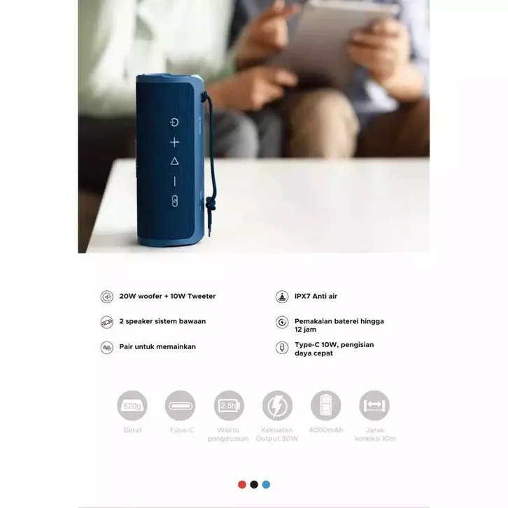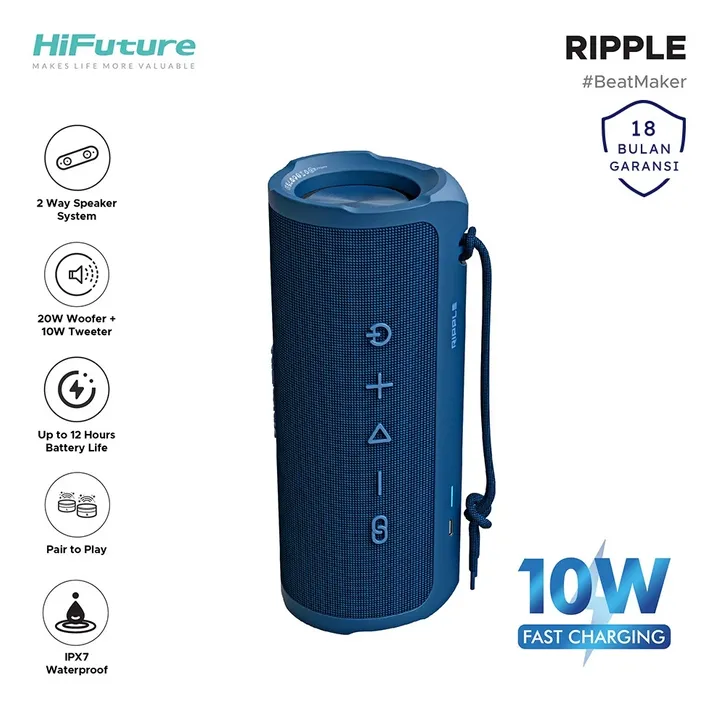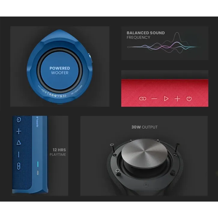 Ripple Portable Bluetooth Speaker 2-Way Speaker System Twin Mode 30W Output TWS Pair to Play IPX7