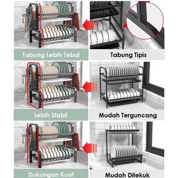 Rak Piring Stainless Rak Pengering Piring Mangkuk Minimalis Best Seller