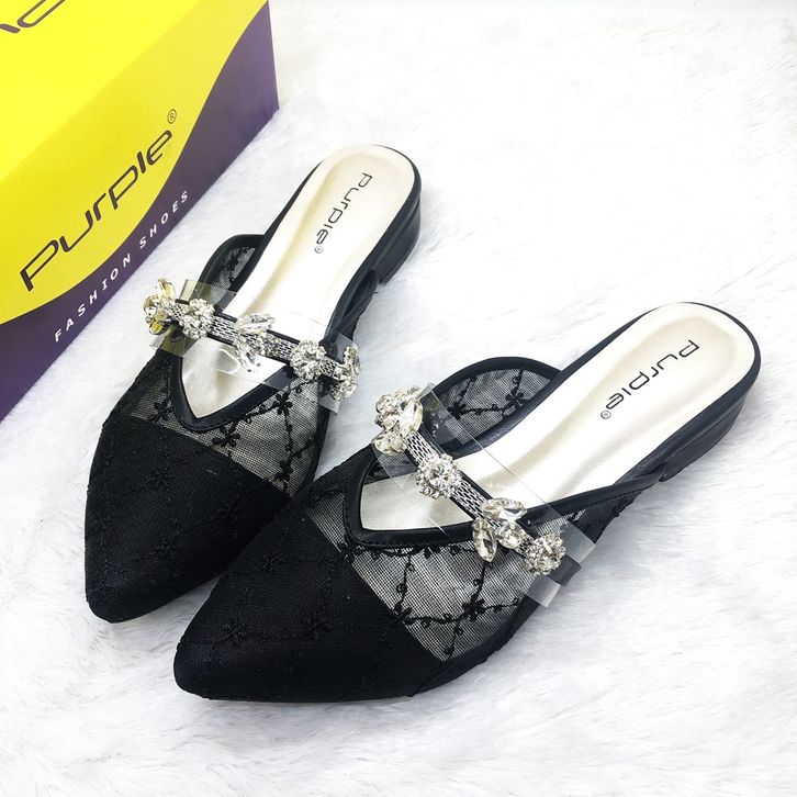 Sandal Wanita Sandal Brukat Flat Shoes Wedding Wanita Valerina Series Purple Original Big Size Lokal