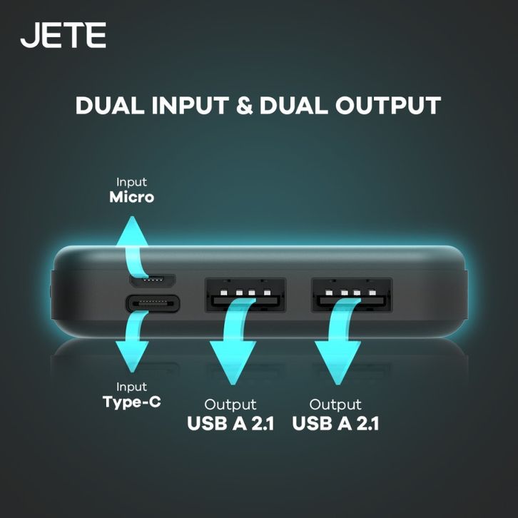 JETE Powerbank C7 10000 Mah Smart IQ Dual Output USB