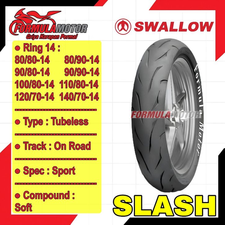 Sepasang Ban Motor Mio, Xeon, Spin Ring 14 - Paket Swallow Slash SB-151 Uk 80/80-14 + 90/80-14 Tubeless Soft Compound