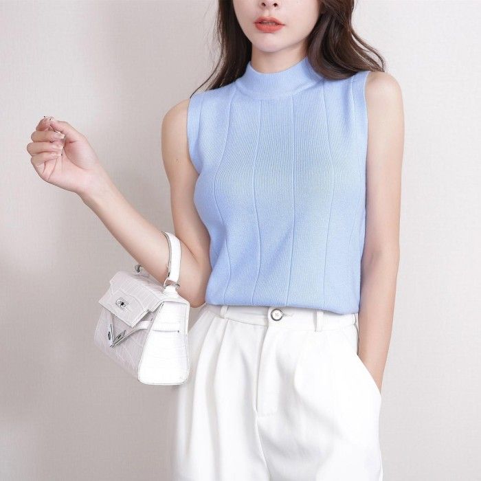 Sleeveless Knit top Turtle Neck Tanktop Korean Style Import A685