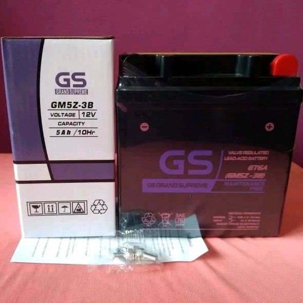 Aki motor legenda, astrea grand, aki kering gs, aki gs grand supreme, gm5z-3b 12v 5ah TERLARIS