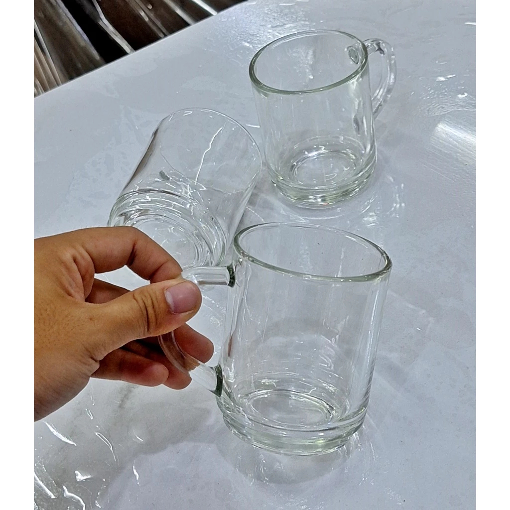 Gelas Kaca Lusinan 6 Pcs Motif Polos Gelas Kopi Gagang Bening Aesthetic Bisa Untuk Kopi Teh Kapasitas 220 ml Terlaris