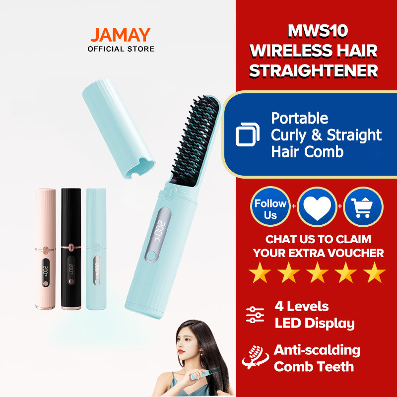 Sisir Catok Pelurus Rambut Elektrik Jamay 2 In 1 Comb Tanpa Kabel Cordless 4 Tingkat Layar Digital Play MWS10