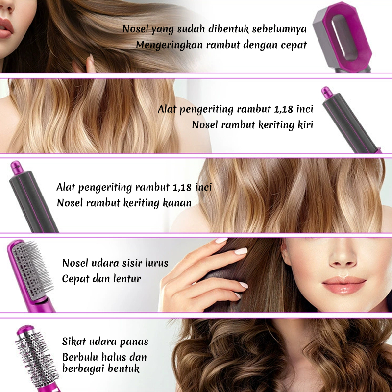 Hair Styler 5 In 1 Hair Dryer Ion Negatif Multifungsi Hair Curler Multifungsi Catokan Rambut