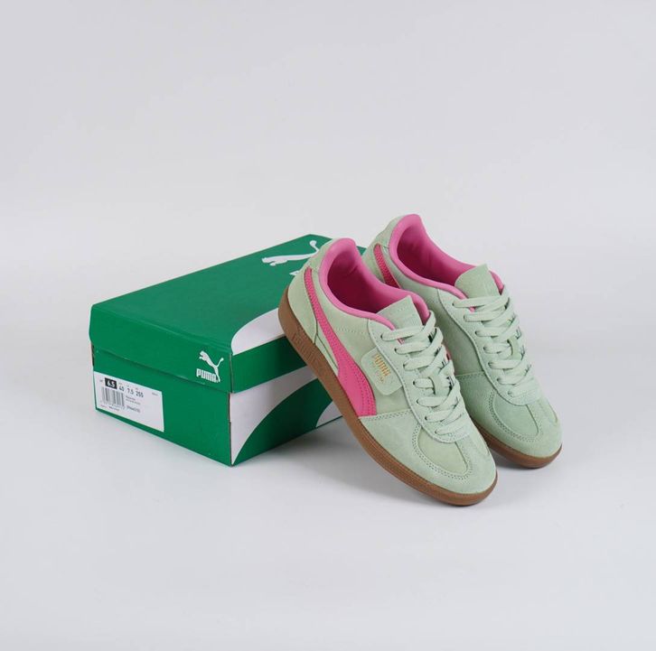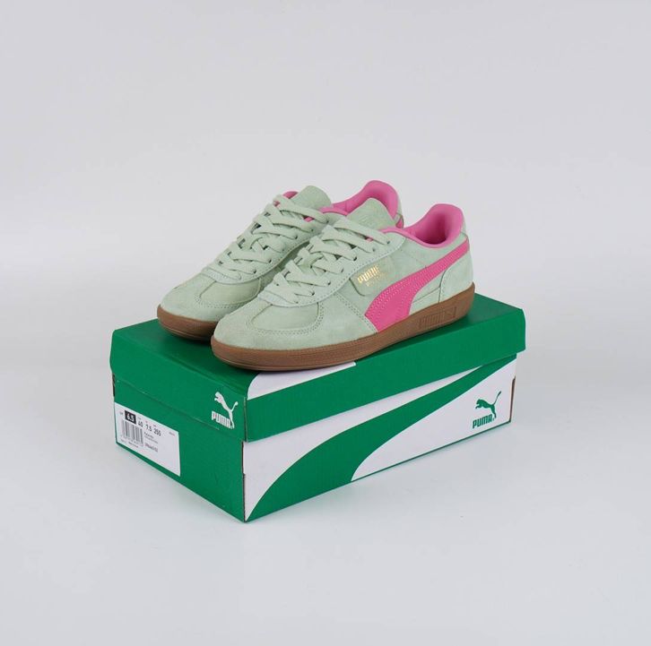 Sepatu Puma Palermo Fresh Mint Pink Original BNIB Full Tag Barcode Bahan Leather Kulit Suede