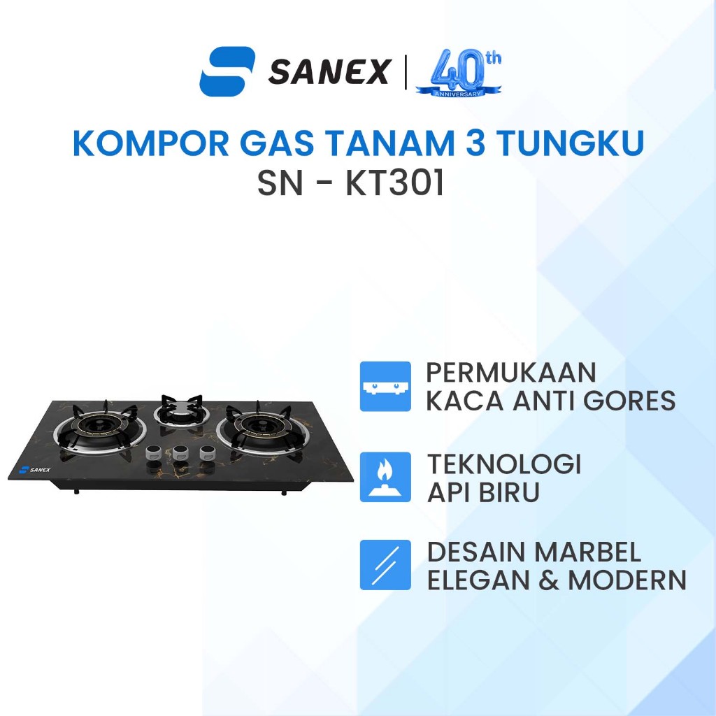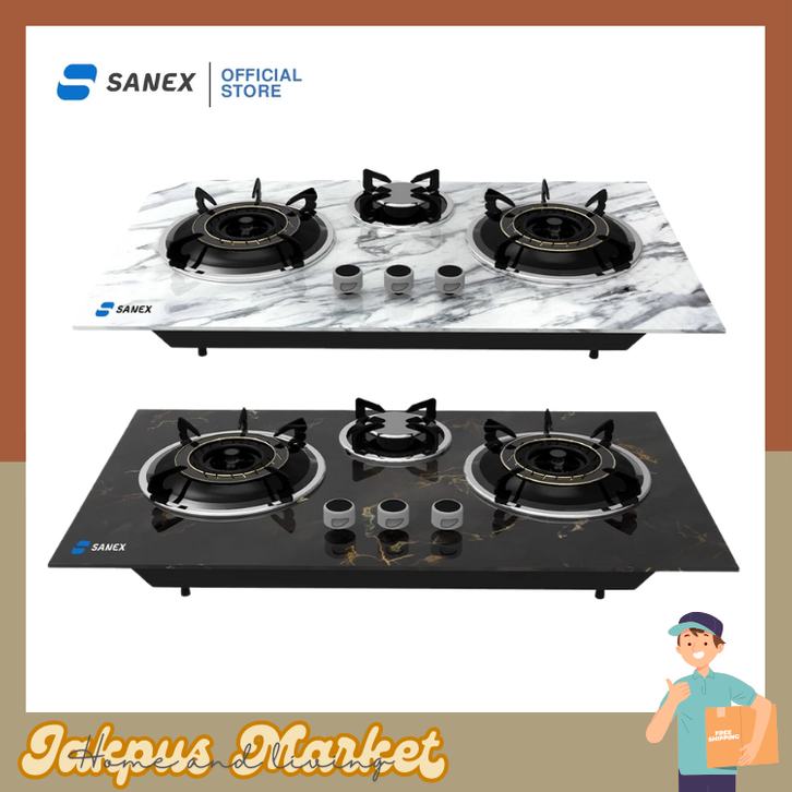 KOMPOR GAS TANAM SANEX 3 TUNGKU MARBLE SERIES SN-KT301 BERGARANSI FREE ONGKIR