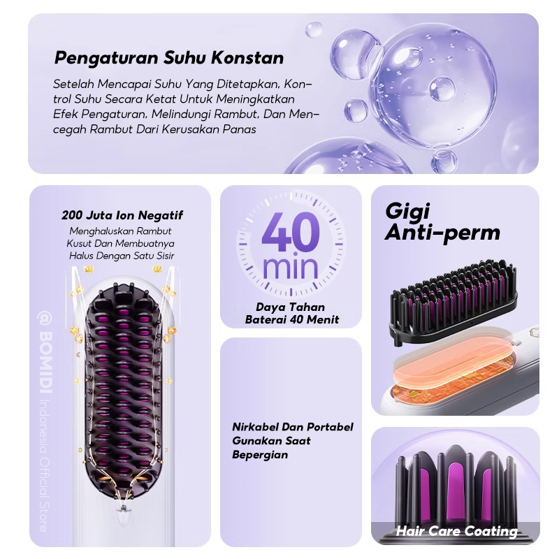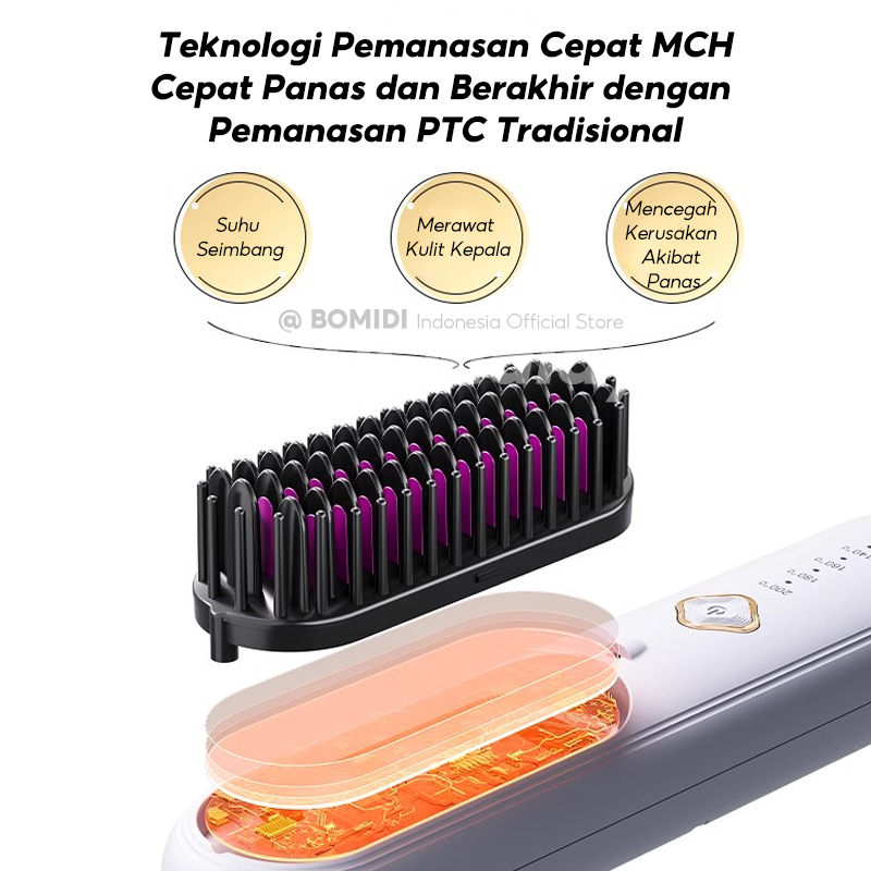 SISIR PELURUS RAMBUT NIRKABEL BOMIDI HB2 WIRELESS HAIR STRAIGHTENER KERITING LURUS LISTRIK