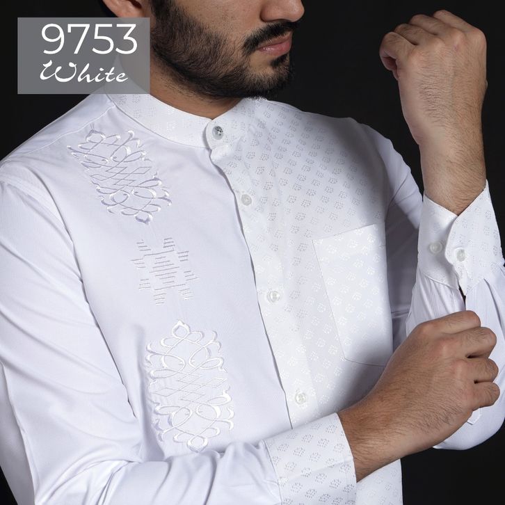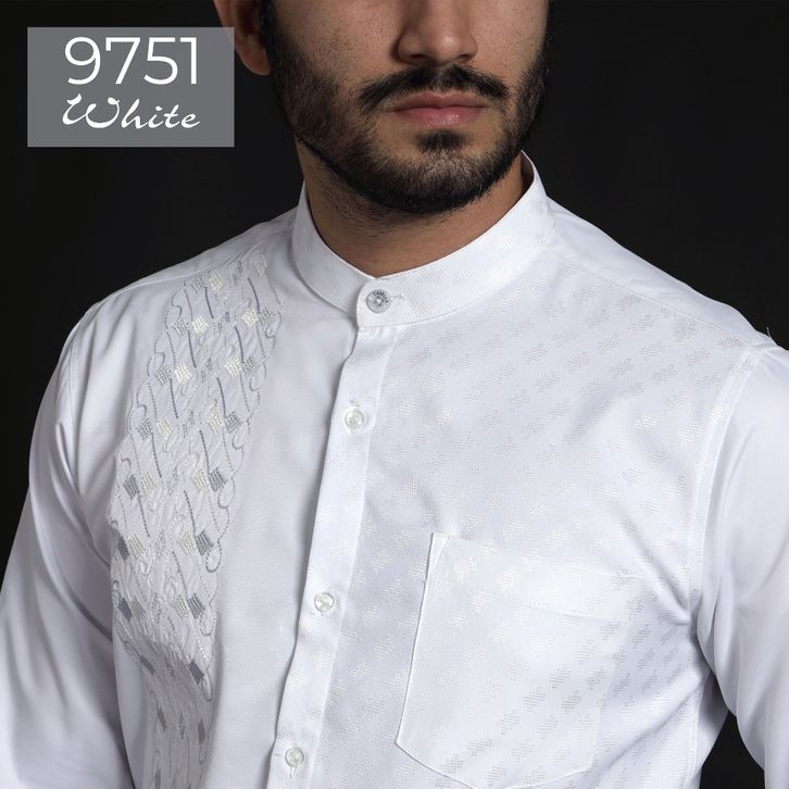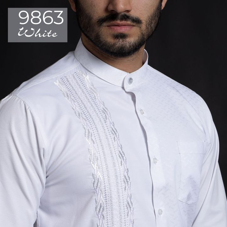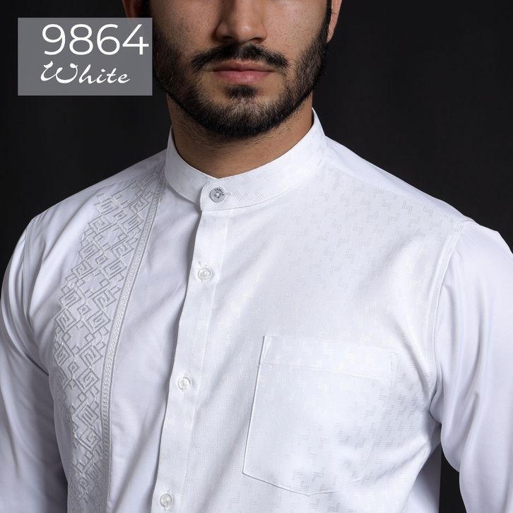 Casella Baju Koko Pria Lengan Panjang Arabesque Embroidery White Design | Baju Koko Putih Lengan Panjang