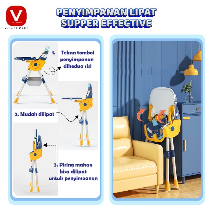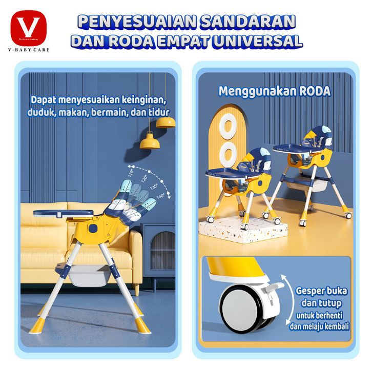 Kursi Makan Bayi V BABYCARE VBABY G02 Multifungsi dan Praktis