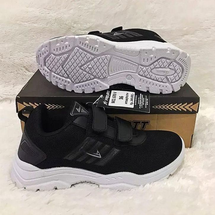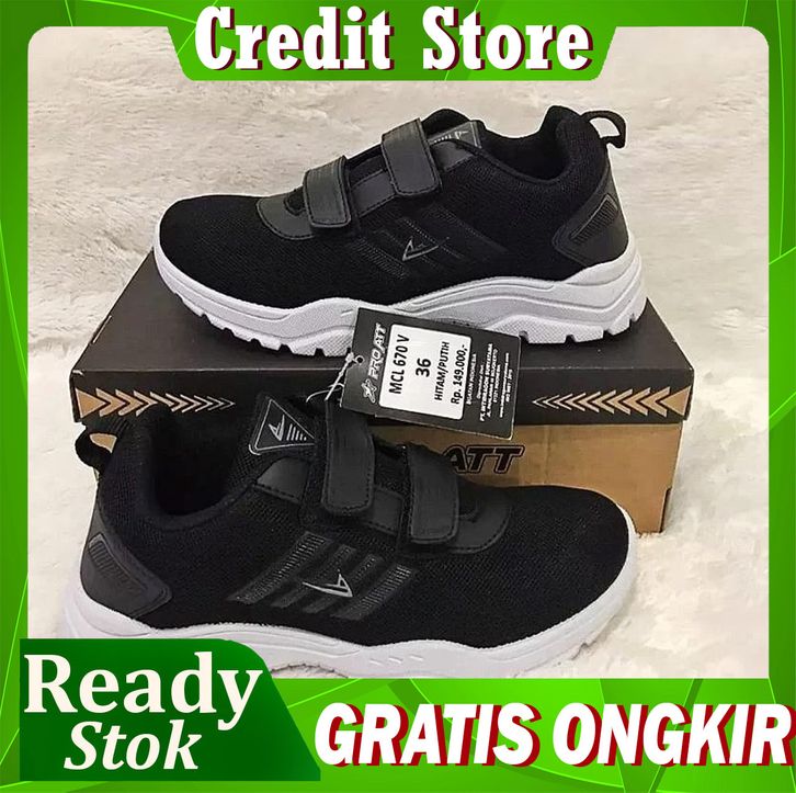 CREDIT STORE SEPATU SEKOLAH ANAK PRO ATT MCL-V 670 SZ 31-38 PEREKAT HITAM PUTIH MURAH MERIAH TERBARU