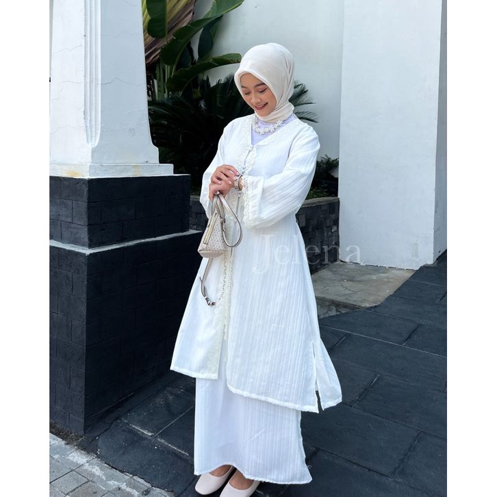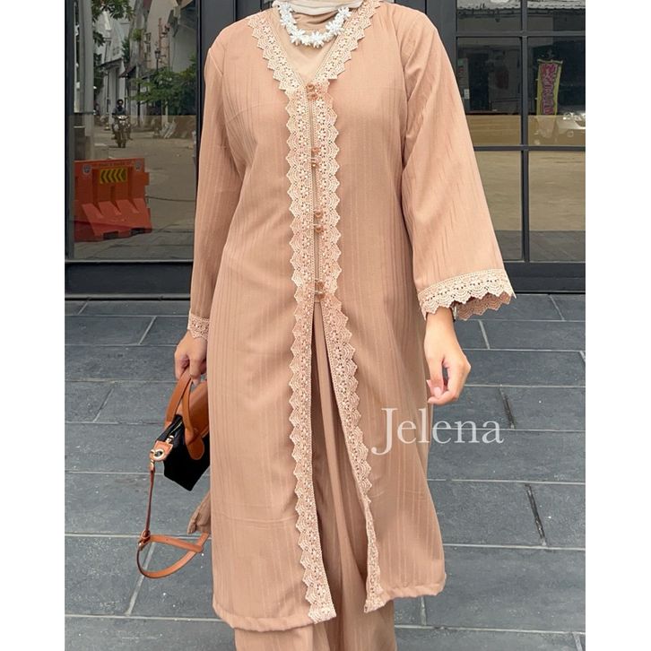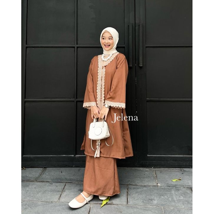 DRESS MUSLIM WANITA JELENA ONE SET RAYA SERIES TUNIK ROK SKIRT RENDA LACE BUSUI BAJU KONDANGAN LAMARAN LEBARAN TERBARU