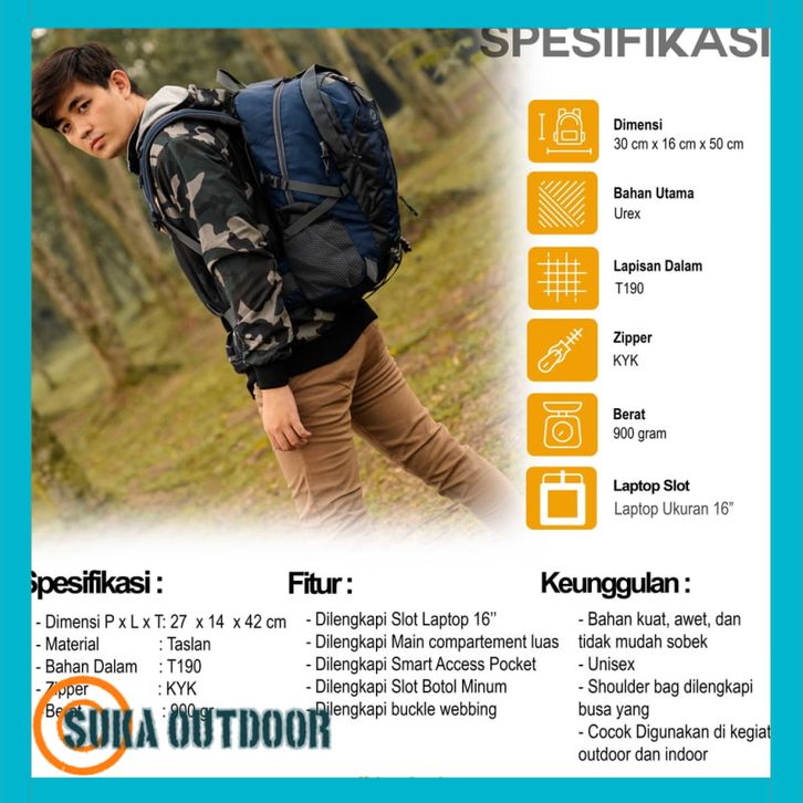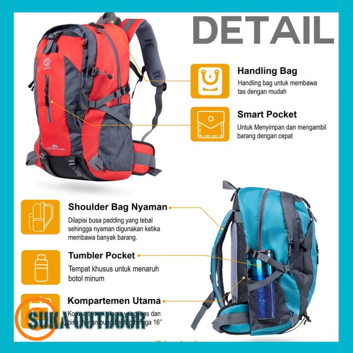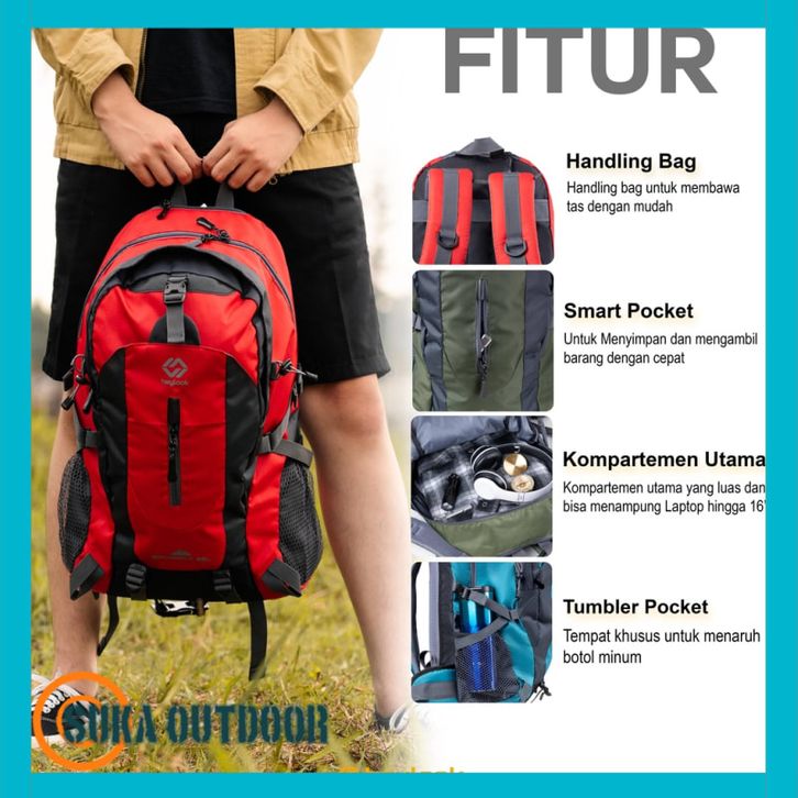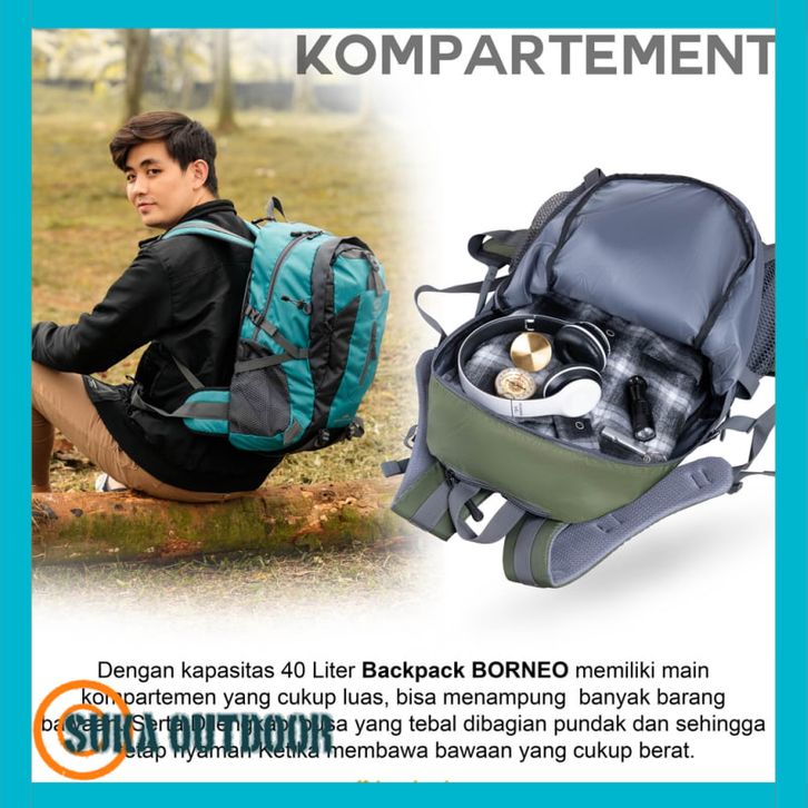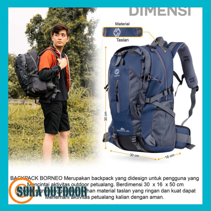 Tas Ransel Gunung BORNEO Backpack Carrier Hiking Camping Outdoor 40L Tas Travelling Tas Travel Tas