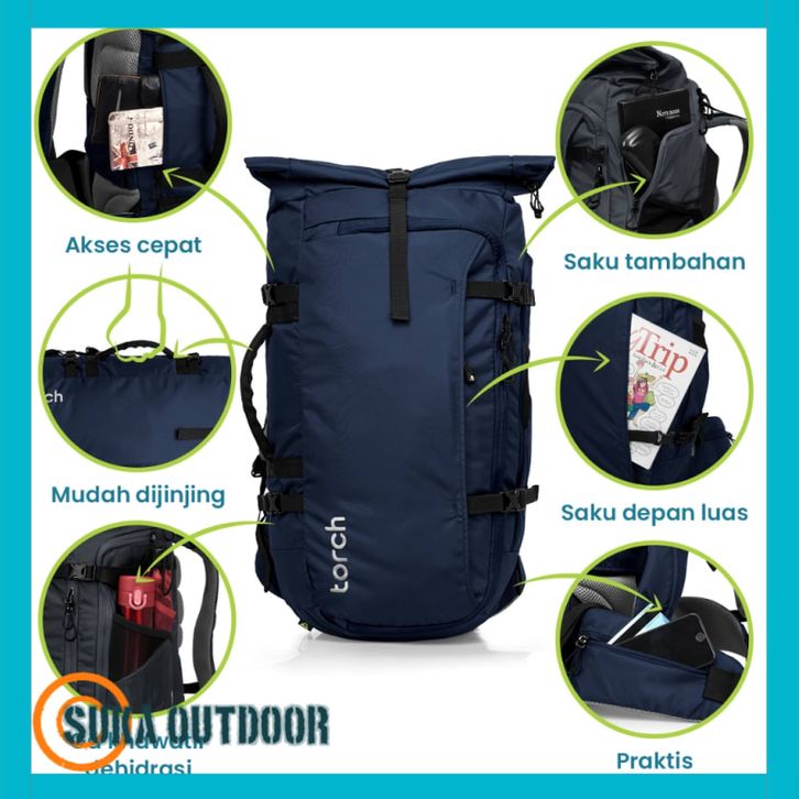 TORCH Fujisawa Tas Ransel Travelling Mudik Punggung Kerja Travel Laptop 15 Inchi Inch Pria Wanita Unisex Tahan Air Muat