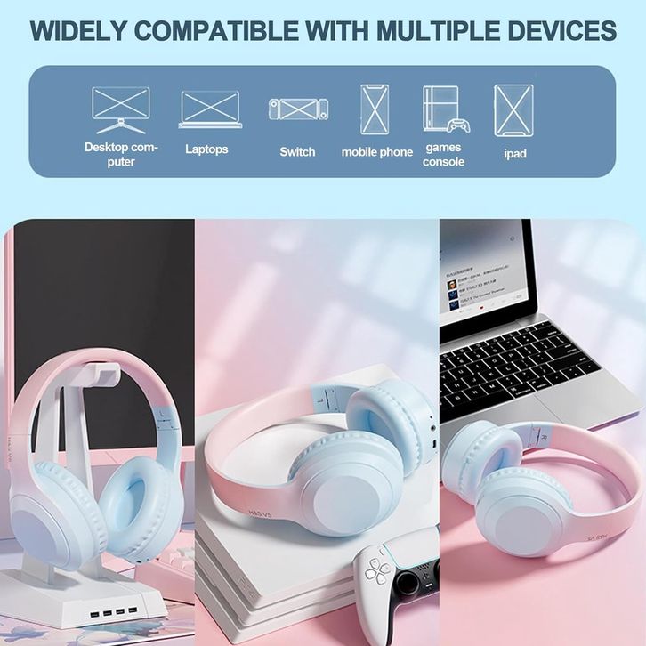 Avvic V5-S Wireless Headphone Bluetooth Gradient Color Headset Stereo HIFI Bass HD Sound Earphone