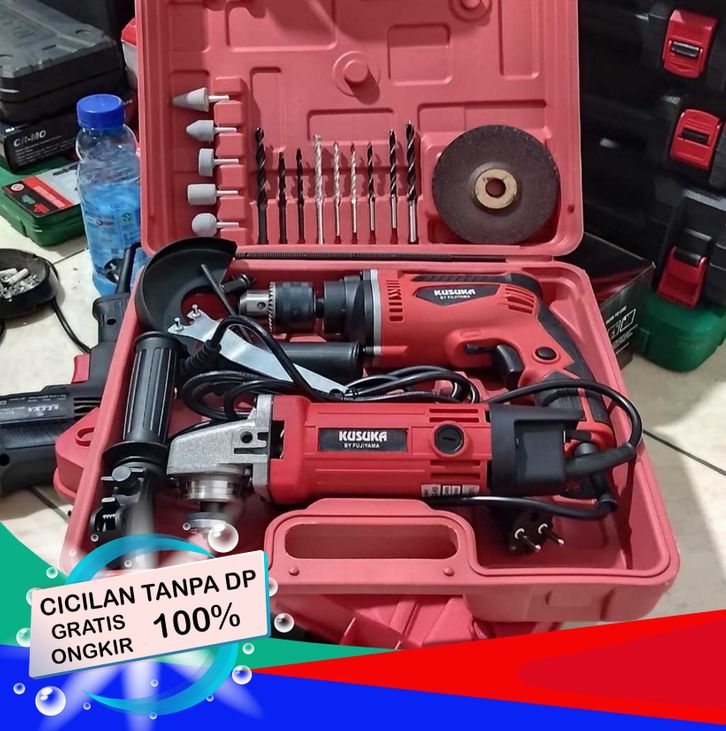 TANPA DP - KUSUKA BOR + GERINDA BOX!! BOR 13MM + GERINDA 4INCH + MATA BOR KAYU+MATA BOR BETON+BATU POTONG + BATU POLES B