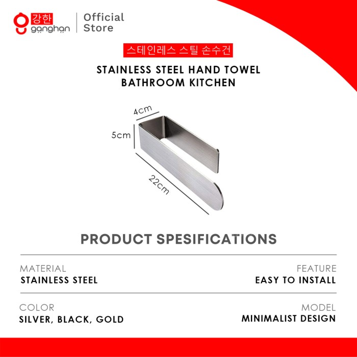 GANGHAN GANTUNGAN HANDUK/LAP TEMPEL STAINLESS STEEL HAND TOWEL HOLDER - SILVER