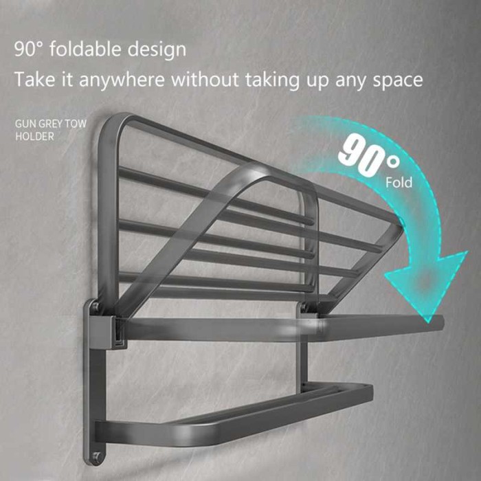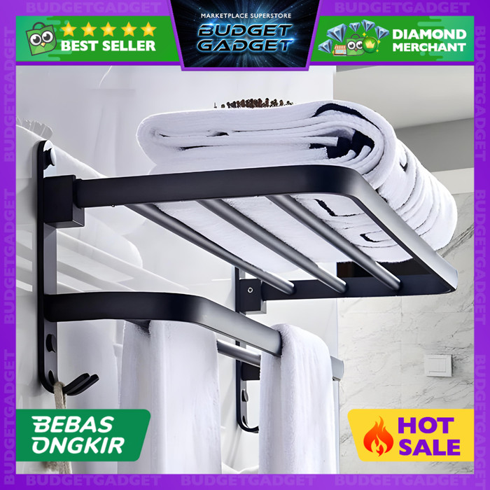 RAK GANTUNGAN HANDUK KAMAR MANDI BATHROOM TOWEL HANGER HITAM - GRAY
