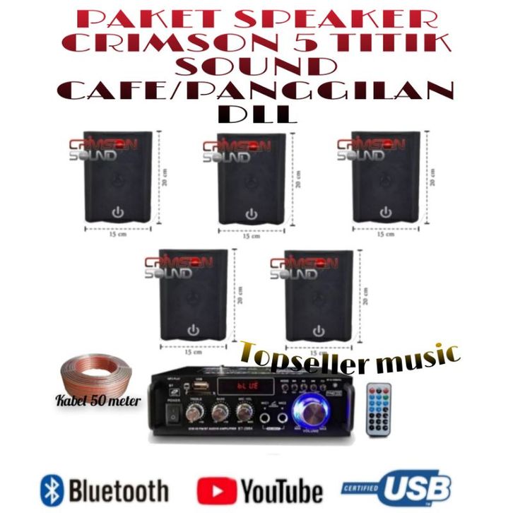 PAKET SOUND SPEAKER CRIMSON 5 TITIK AMPLIFIER BLUETOOTH-USB CAFE /RESTORAN/SEKOLAH/KANTOR DLL