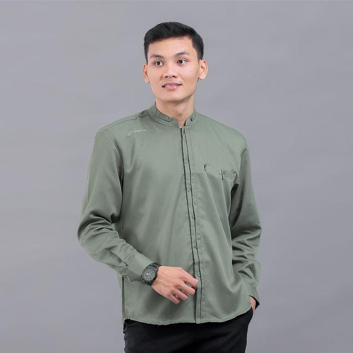 Baju Koko Pria Elrumi Lengan Panjang Baju Motif Antasena Warna Sage Kemeja Koko Polos Elrumi Terbaru Murah BEST SELLER