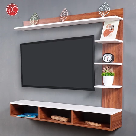 Rak Tv Minimalis Modern Dinding Set Ruang Tamu Kayu Terbaru Kuat Murah 32-42 In 120 cm Woodgrain