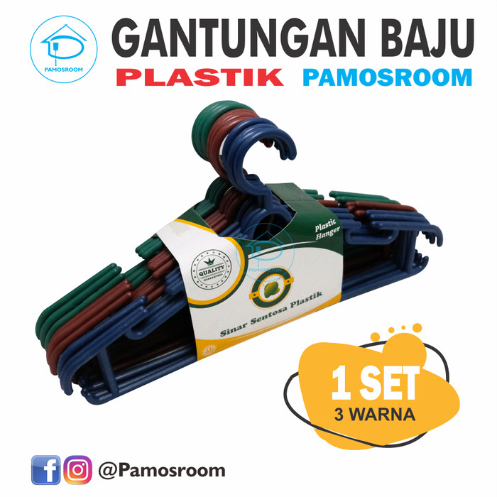 PAMOSROOM HANGER BAJU PLASTIK GANTUNGAN BAJU CELANA PAKAIAN TERJANGKAU - WARNA WARNI