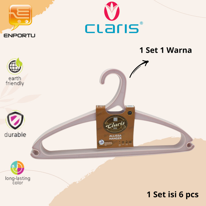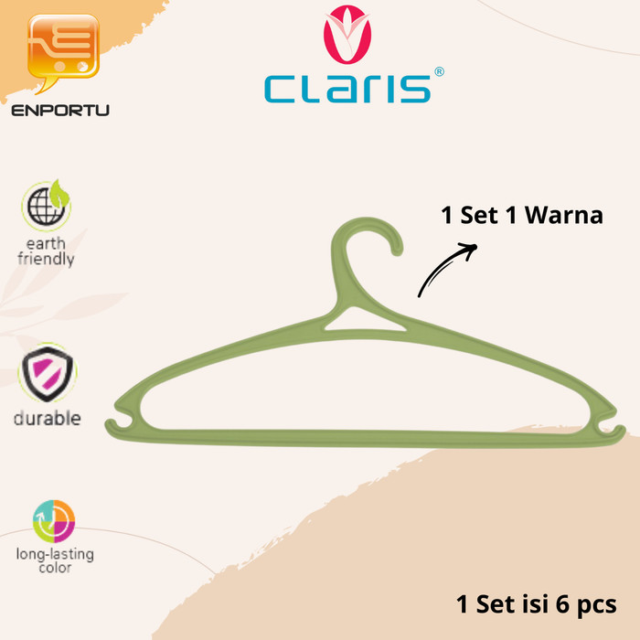CLARIS HANGER PLASTIK GANTUNGAN BAJU ALLISSA 0160-6 RE SET 6 PCS - AVOCADO GREEN