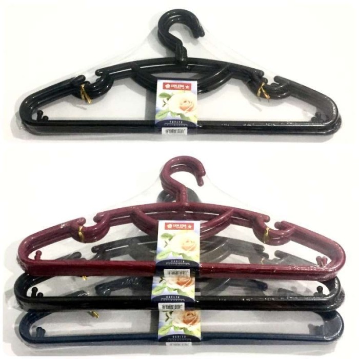 LION STAR GB 10 CLOTHES HANGER GANTUNGAN BAJU DEWASA KUAT PLASTIK 3 PC - DENGAN BUBBLE