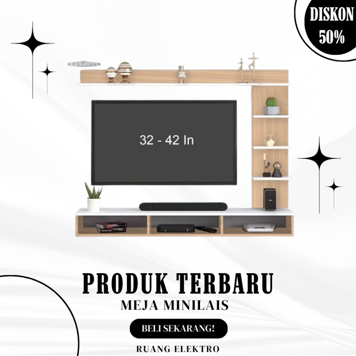 Rak Tv Minimalis Modern Dinding Set Ruang Tamu Kayu Terbaru Kuat Murah 32-42 In 120cm Warna Kayu