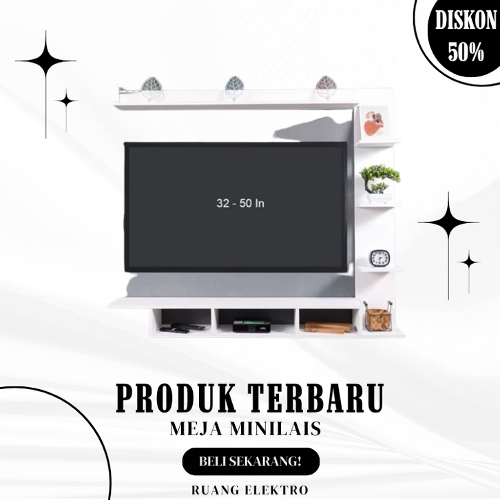 Rak Tv Minimalis Modern Dinding Set Ruang Tamu Kayu Terbaru Kuat Murah 32-50 In 140x120 cm / Meja TV Tempel Dinding