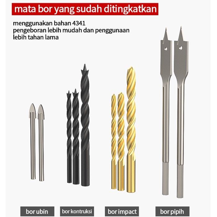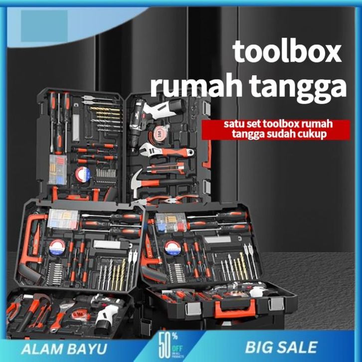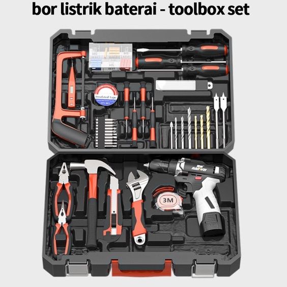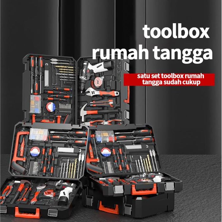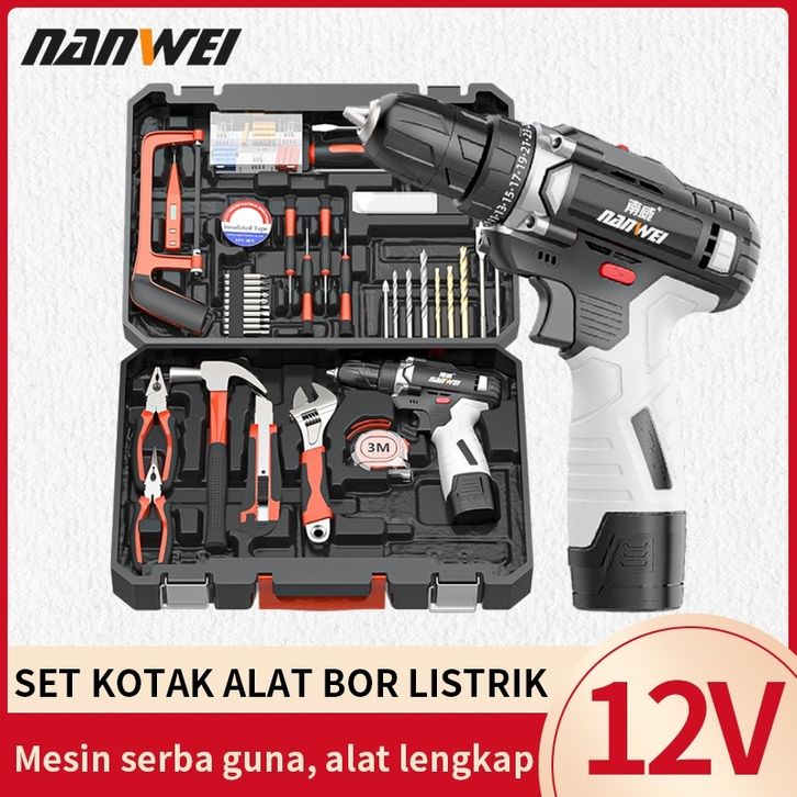 NANWEI Hand Toolset Tool Kit Set Toolbox Cordless Drill Set Kotak Alat Multifungsi Bor Listrik Set Obeng