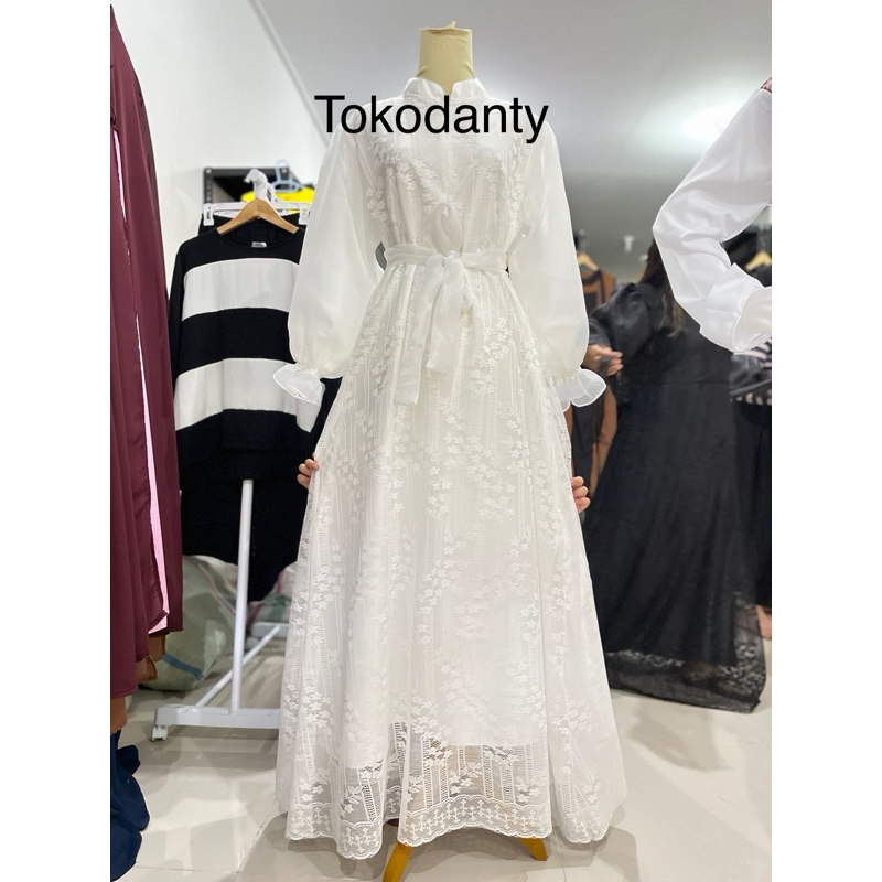 Raya Dress Brukat Baju Lebaran Dress Idul Fitri Gamis Putih