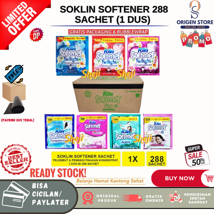 SOKLIN SOFTENER PEWANGI PAKAIAN SEKALI BILAS 1 DUS ISI 288 SACHET