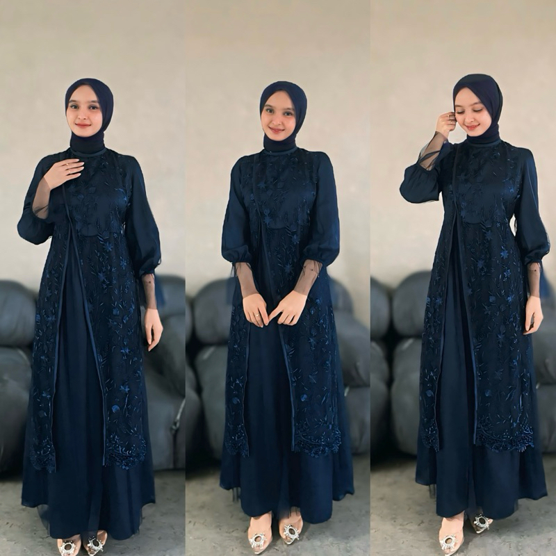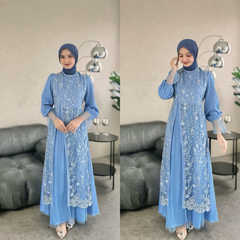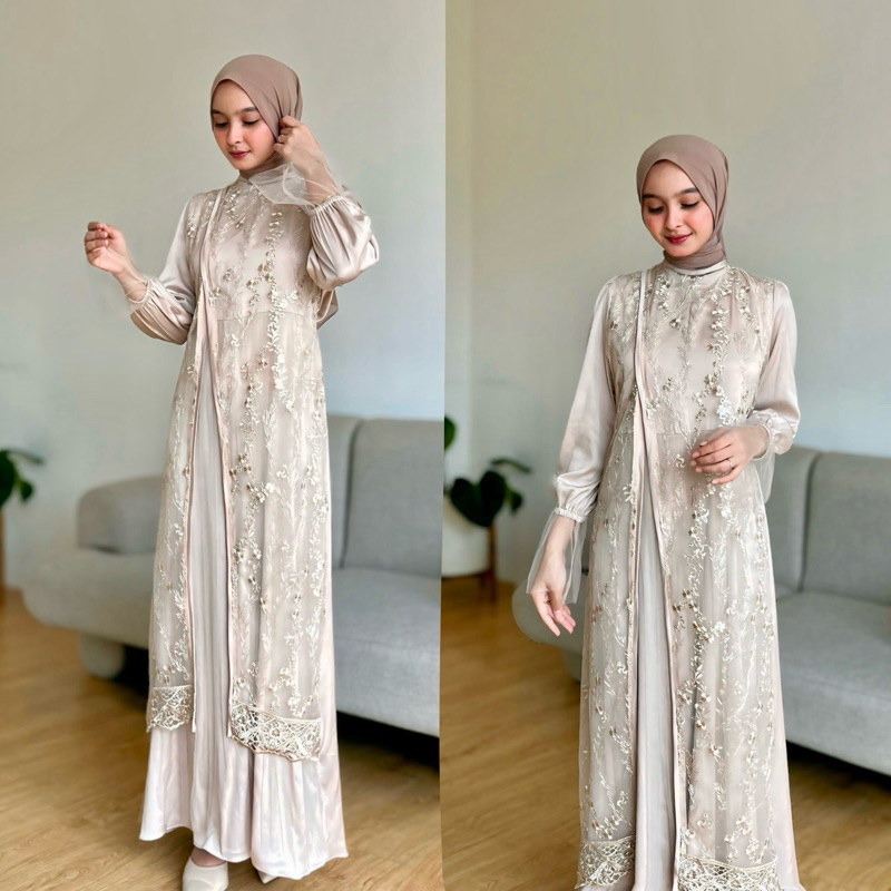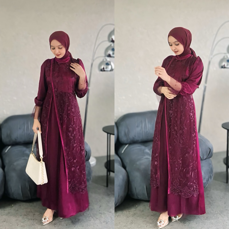 SPECIAL PRICE NAELA DRESS SET ( DRESS + TUNIK BLOUSE LACE ) DRESS TERBARU / GAMIS KONDANGAN / DRESS PESTA