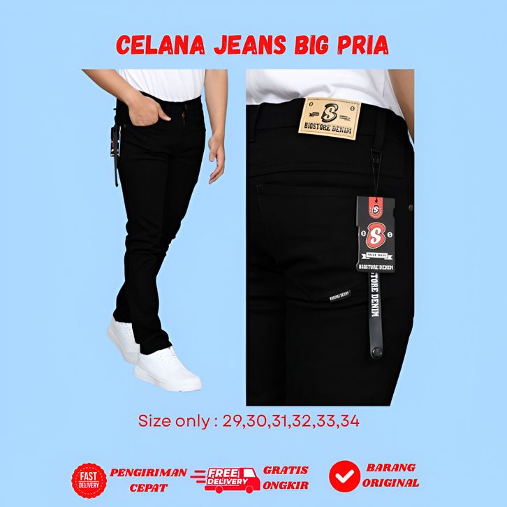 Celana Jeans Big Pria Standar Jumbo Panjang Pria Dewasa BIOSTORE DENIM BSTR slimfit pensil strecth
