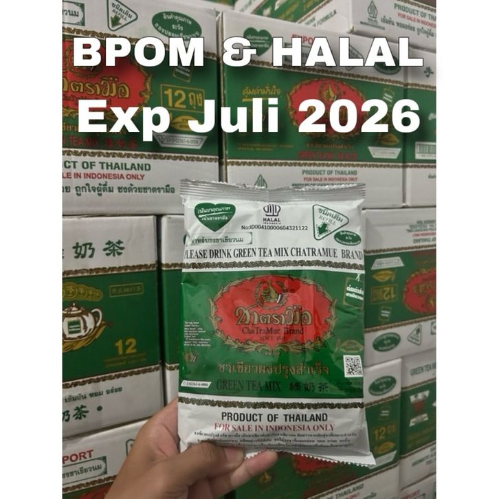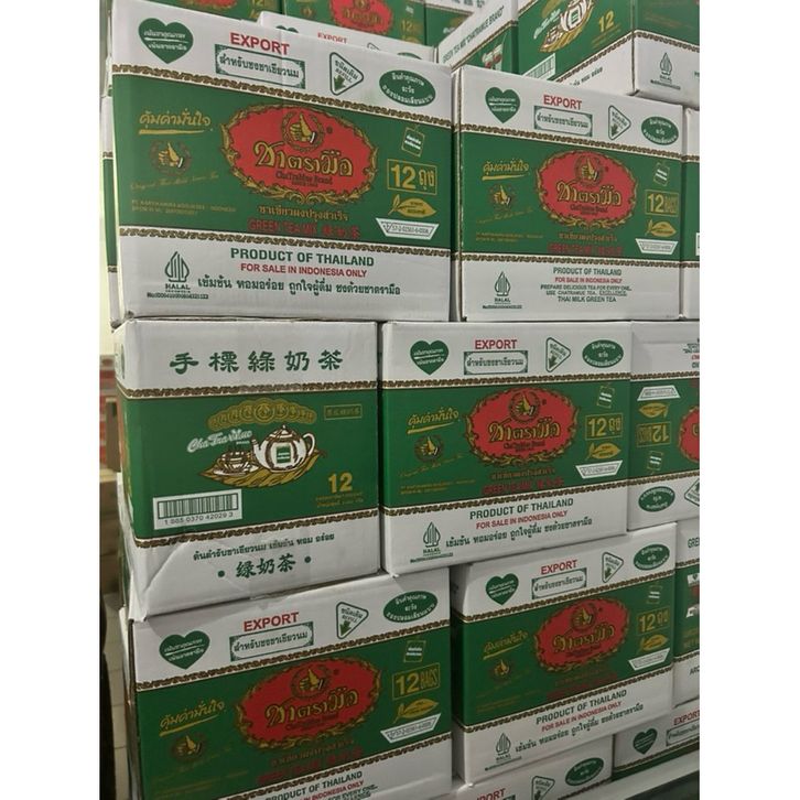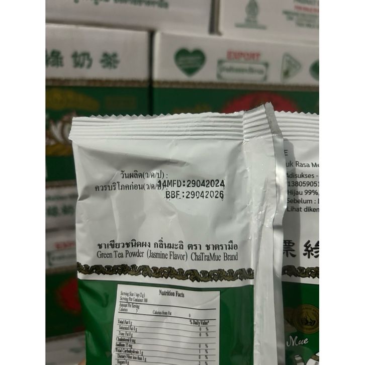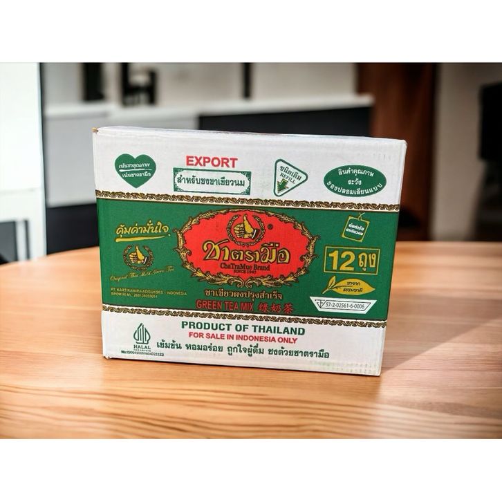 THAI GREEN TEA MERK CHATRAMUE 200G 1 DUS SUDAH BPOM RESMI DAN LABEL HALAL ISI 12 BKS