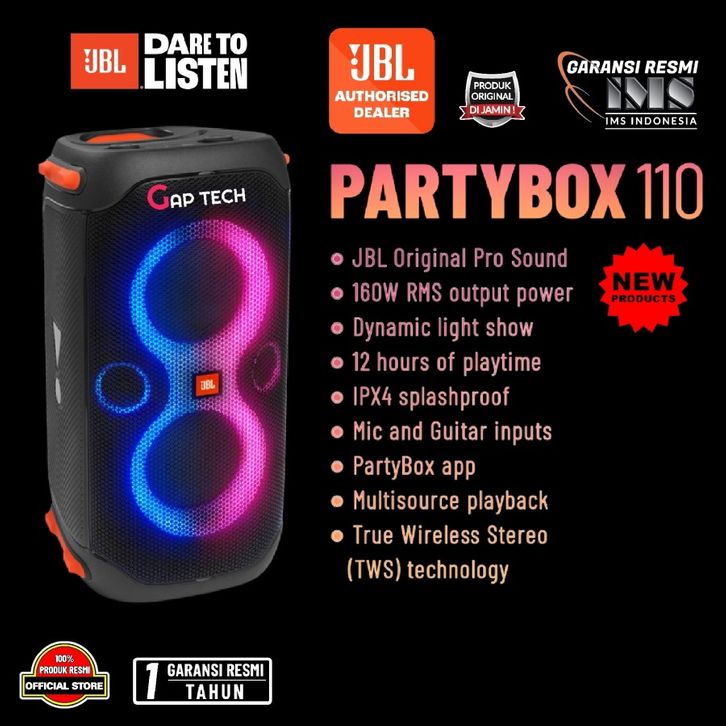 JBL PartyBox 110 / Party Box 110 Speaker Portable with Built-in RGB Lights - PartyBox 110
