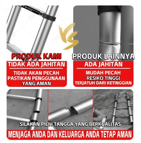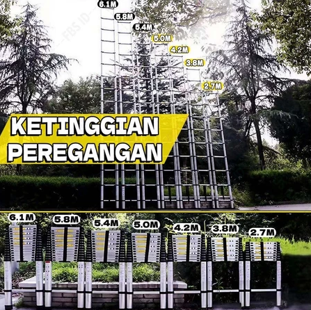 Tangga Teleskopik Aluminium Portabel Tangga Lipat 3.2Meter Telescopic Ladder Tangga Lurus
