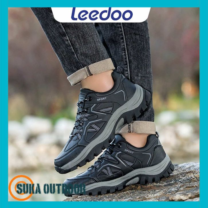 Leedoo Sepatu Hiking Pria Olahraga Outdoor Sepatu Gunung Adventure Anti Slip Shoes Hitam MH208