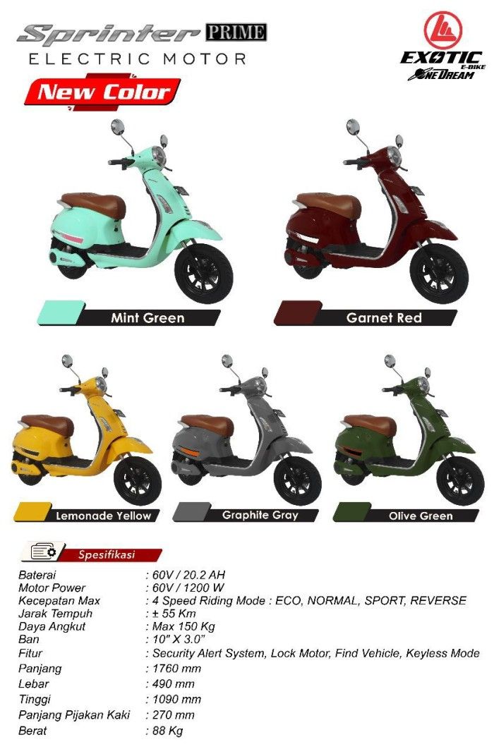 Sepeda Motor Listrik Vespa Exotic Sprinter Prime Scooter Matic New - Mint Green