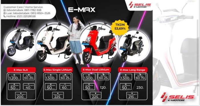 Motor Listrik Selis E-Max Baterai LITHIUM E Max 1200 Watt - Hitam Single